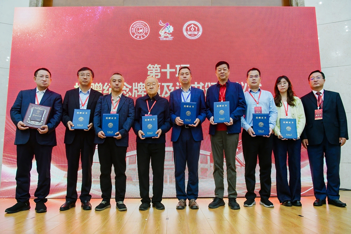 校友和基金工作办公室主任康永刚为胡家达等校友颁发捐赠纪念牌匾与证书,以感谢校友对学校和学院发展的大力支持。