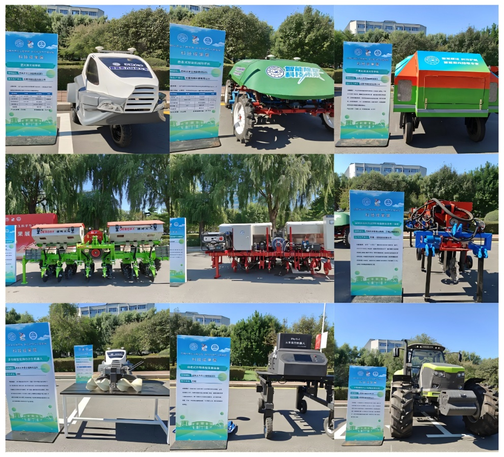 本次成果展系统展示了学院最新科研突破与产学研融合成果:与新疆牧神、山东巨明等企业联合研制的联合收割机格外引人注目,可实现大喂入量工况下玉米低损采摘、低损脱粒、高净清选等作业,成为保障粮食安全的"硬核装备";自主研发的激光除草机具有紧急避险和自主作业功能,可实时识别数十种杂草,精确定位杂草空间位置,通过激光热效应灼烧杂草,实现非接触式靶向除草;自主研发的2BQC-6高速气吹精密播种机,实现单粒精量播种,作业效率高、播速快;自主研发的智能电驱播种机、德邦大为播种机凭借厘米级导航精度与精准施肥功能,实现了“种肥同播、按需供给”的精细化作业;依托“十四五”国家重点研发计划项目研发的一款多功能盐碱地改良装备,适用于各类盐碱草地综合治理作业;粮仓机器人的亮相,则展现了粮食仓储环节的智能化升级,其自主巡检、粮情监测功能可大幅降低仓储损耗,守护“大国粮仓”。