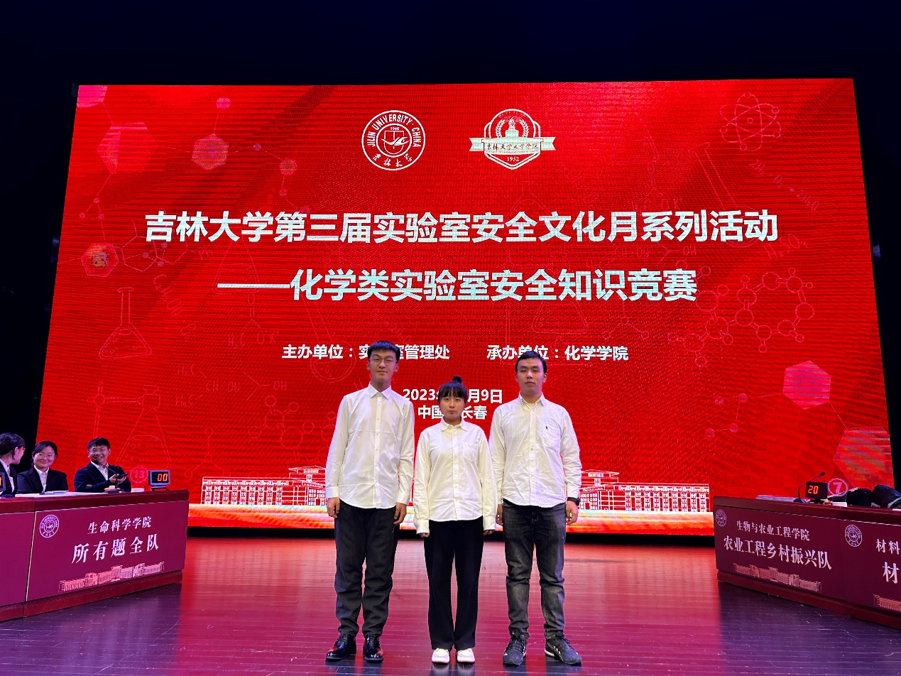 11月9日下午,beat365在线体育官网第三届实验室安全文化月系列活动之化学类实验室安全知识竞赛在鼎新大讲堂隆重举行。此次活动由校实验室管理处主办,化学学院承办。来自超分子结构与材料国家重点实验室、无机合成与制备化学国家重点实验室、beat365在线体育官网以及其他12家学院的代表队汇聚一堂,共同角逐。每支队伍由三名队员组成,beat365在线体育官网农业工程2023级本科生沈文博、2023级硕士生刘振科、2022级博士生陈美辰组建的“农业工程乡村振兴”队表现出色,最终荣获大赛优秀奖。