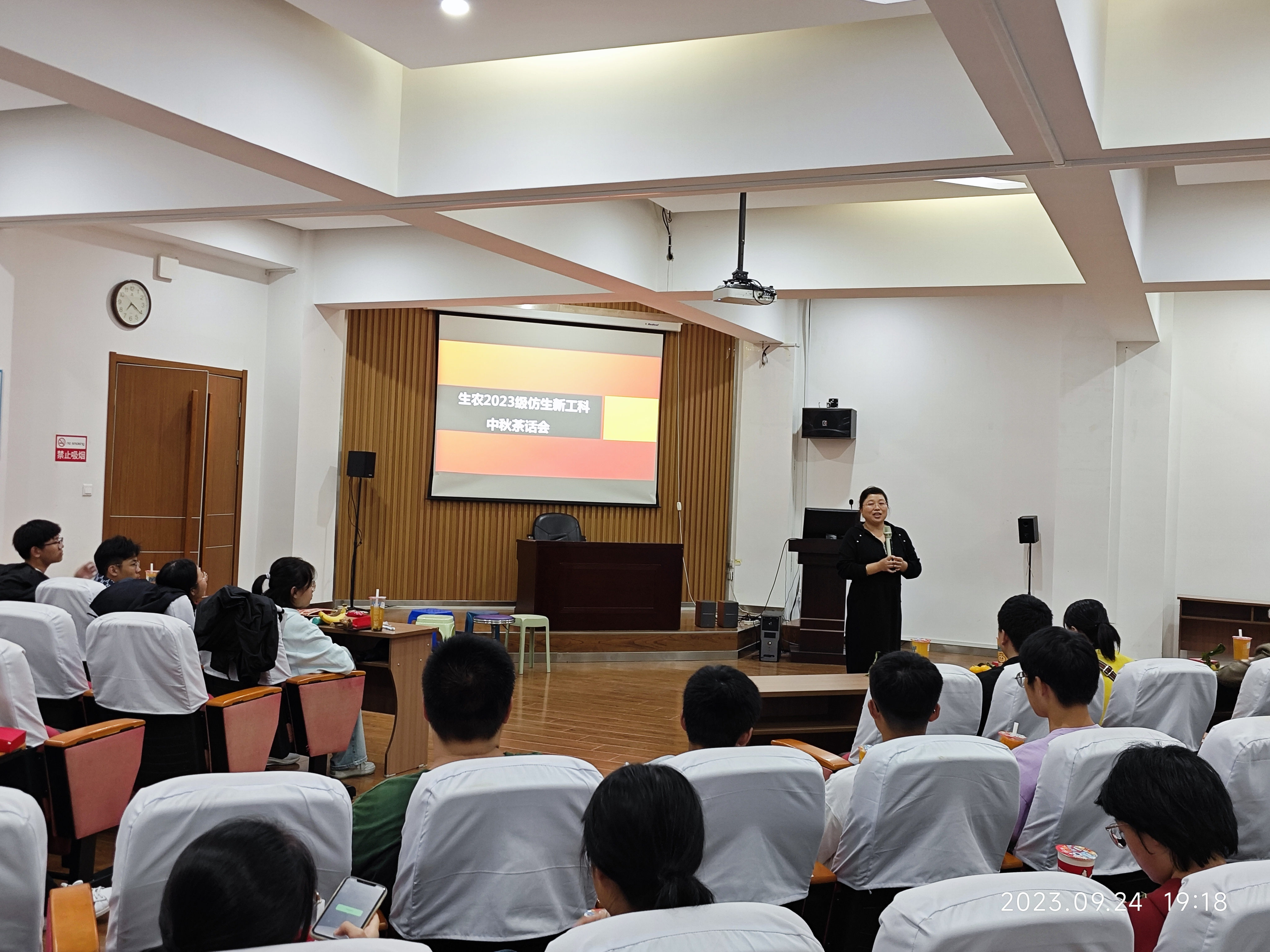 为了欢迎来自五湖四海的新同学,给同学们带来家的温暖,丰富同学们的日常生活,让同学们更好的适应大学这个新的生活环境,生物与农业工程学院2023级仿生科学与工程专业在9月24日晚举办了仿生新工科中秋茶话会。本次晚会有任丽丽老师、各班班主任及副班主任、2023级仿生科学与工程专业新生应邀参加,由新生杨忠义、刘思涵同学主持。