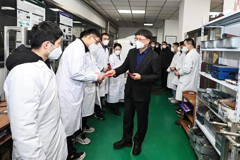 天气寒冷,但实验室内暖意融融,张希校长一行走访了仿生3D/4D打印实验室、仿生高分子材料制备实验室,与同学们进行了亲切的交谈,详细询问了实验室主要研究方向和实验仪器设备用途,就仪器自动安全防护装置和学生自主研发的设备进行了了解;叮嘱大家假期注意安全,特别是实验安全,所有的研究都要以安全为前提;最后祝同学们假期愉快,春节快乐,学业进步,皆得所愿,并为留校学生送上新年红包。同学们倍感温暖,深受鼓舞,纷纷对校长的关心和祝福表示感谢,并将牢记校长的叮咛嘱托,度过一个充实、愉快、有意义的假期。