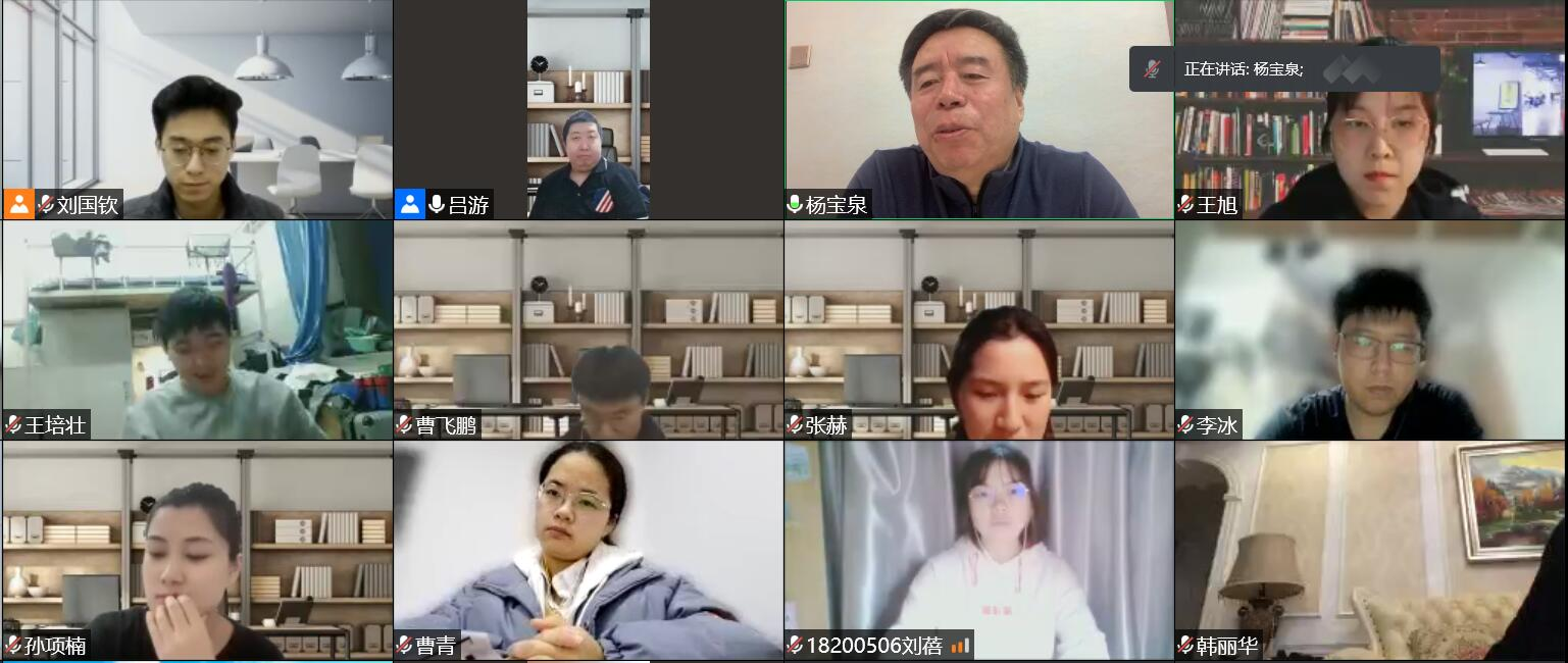 会议伊始,杨宝泉书记从当前防疫总体情况、防疫工作面临的困难和挑战以及在抗疫攻坚胶着的关键时期如何应对三个方面展开介绍。随后杨书记肯定了beat365在线体育官网学子在疫情防控特殊时期所展现出的顾大局、明事理、有担当、讲奉献的精神风貌,表示学院会克服重重困难,为同学们全力解决防疫物资、生活物资以及学业、就业等问题。针对长期封寝带给部分同学的身体及心理压力,杨书记倡导适当进行室内运动,锻炼身体,必要时可寻求辅导员老师或专业机构进行疏导。会议中杨书记还鼓励同学们在特殊时期要直面困境、积极化解、充实自己,与他人团结友爱,同心协力共度艰难时光。学院也将有序开展各类线上活动并为即将毕业的同学组织线上就业互动会,丰富疫情期间生活。杨书记最后强调,疫情虽在持续,但胜利在望,在此抗疫决战决胜之际,要相信党和政府的正确决策、执行能力以及科学分析,增强抗疫必胜信心,严格遵守防疫规定,做自己健康的第一责任人。