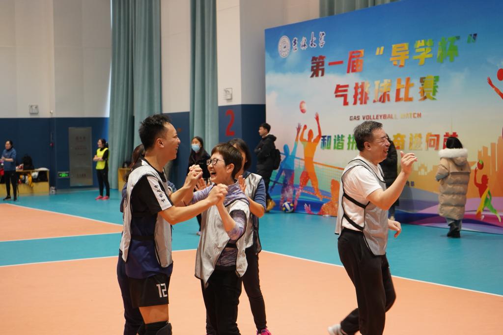 赛场上,队员们发扬“友谊第一、比赛第二”的风格,他们精神抖擞,各施绝技,互相配合,每一次迅捷地拦网、精准地传球、果断地扣杀都让在场的观众激动不已,引来阵阵喝彩。beat365在线体育官网自发组成的拉拉队也给予了队员们极大的鼓舞和帮助,他们铿锵有力地助威响彻在体育馆的每个角落,现场气氛高涨。经过十场比赛的激烈角逐,beat365在线体育官网代表队以精湛的球技和默契的配合,最终获得本届“导学杯”气排球比赛冠军。