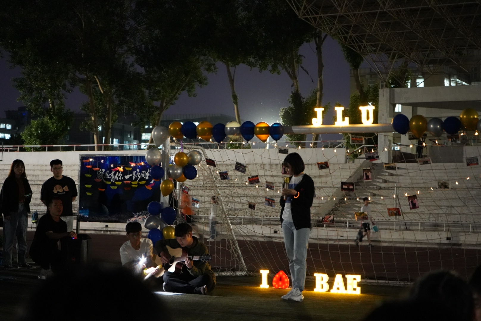 “聚散不由你我,愿岁月可回首”或许有很多还未来得及说的话,本次活动为同学们准备了互动环节:同学们可以通过书信的方式来表达浓浓的师生情。“苍苍芳草色,含露对青春”,面对过往和未来,似秋风拂心,略显感动。忆往昔之余,由丁汉良师兄演唱的《好想大声说喜欢你》、梁祎师姐演唱的《说散就散》、张浩师兄演唱的《向往》,将音乐会再次推向了高潮,在深情的歌声中,现场再次沸腾。活动进行时,神秘嘉宾徐源老师和包志远同学给现场观众带来的吉他弹唱《但愿人长久》将活动推向了最高潮,现场掌声雷动,同学们拿起荧光棒随着音乐一起摇摆。活动最后在场全体师生齐声高歌《北京东路的日子》,师弟师妹发放写满祝福语的“橙子”,以此祝愿师兄师姐毕业后前程似锦,马到成功。此次毕业季音乐狂欢在现场热烈的掌声与欢呼声中缓缓落下帷幕。