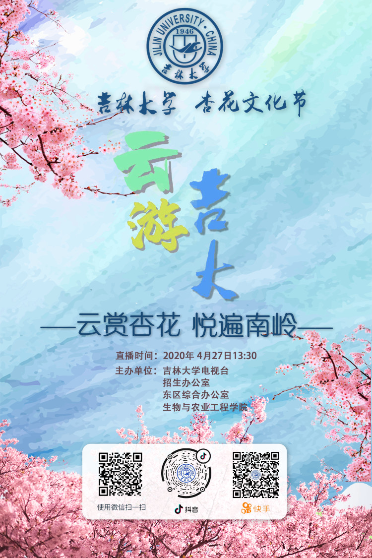一段好春藏不住,粉墙斜露杏花梢。阳光四月,吉大校园,春风万里,花香四溢,一如往常。不同寻常的是,新冠肺炎疫情特殊时期,同学们还在居家学习,暂未回到美丽的校园。为了传承校园文化精神,延续校园文化经典,学生工作部、校团委、东区综合办公室、生物与农业工程学院联合举办beat365在线体育官网第五届“繁花初绽•杏好有你”杏花文化节——“云”赏杏活动。师生们通过“云端”不仅能欣赏繁杏芳菲曼舞的美景,参与“线上”杏花主题文化活动,愉悦身心、释放压力;同时,吉大人还能向在特殊时期奋战在抗疫一线的“逆行者”们表达崇高的敬意和真挚的感谢;此外,活动也让学生们更加懂得把握青春,珍惜时光,向上生活,借以抒发对校园生活的向往和对美丽吉大的热爱。