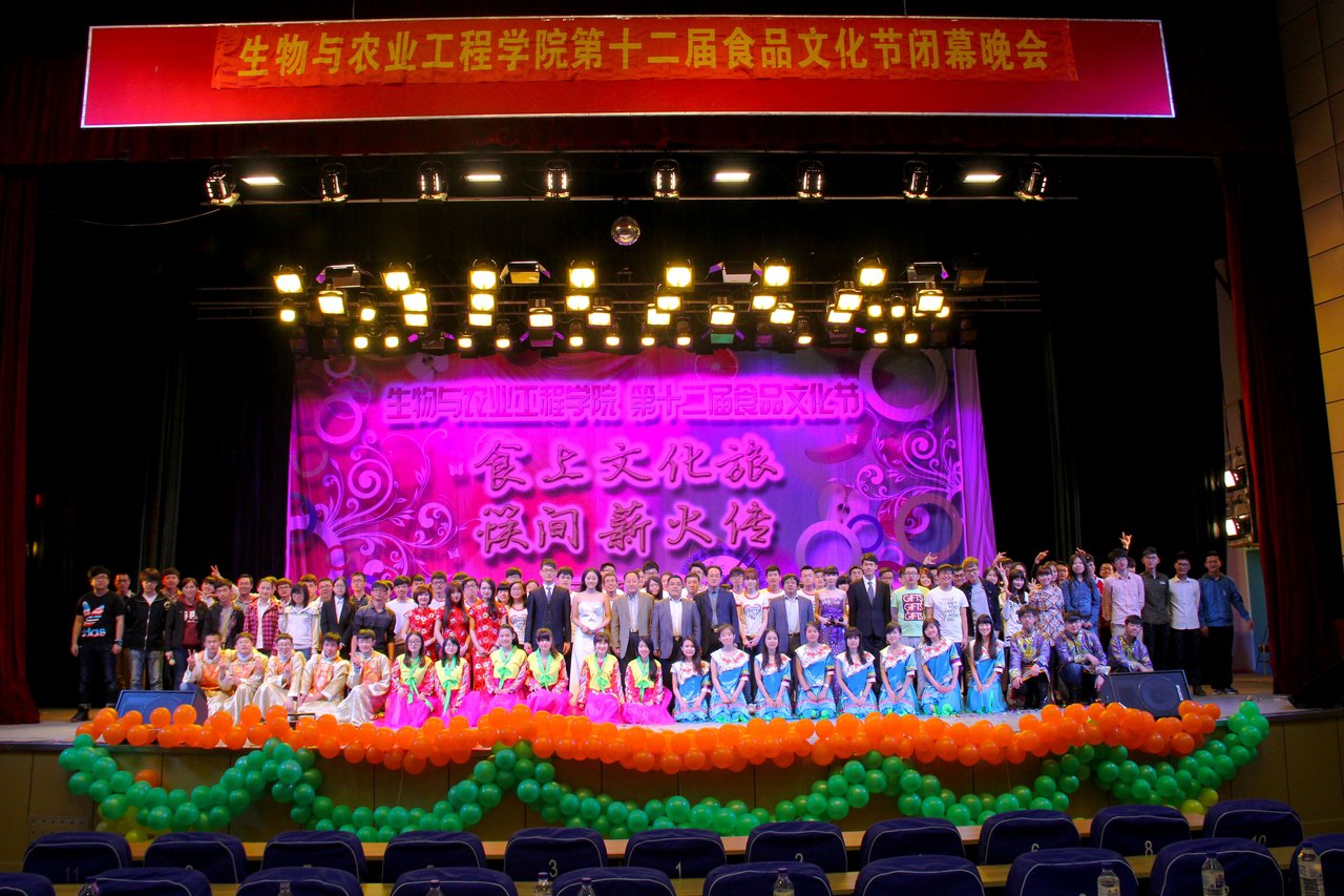 4月25日,由生物与农业工程学院举办的“食上文化旅,筷间薪火传”第十二届食品文化节闭幕晚会在南岭文化活动中心成功举行。学院党委书记吕子珍老师、院长杨印生教授、院党委副书记兼副院长曲贵文老师、副院长马云海教授、食品科学与包装工程系系主任周亚军教授,及各兄弟学院的老师们出席了晚会。