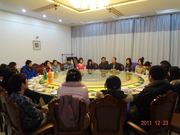在“圣诞”、“元旦”双节来临之际,为了表达对同学们的节日祝福,缓解期末考试前的压力,促进师生的感情,12月23日晚,名师班主任、院党委书记吕子珍老师与451005班全体同学在南岭校区留学生餐厅欢聚一堂,共度佳节,辅导员华蕊老师受邀参加了本次聚会。