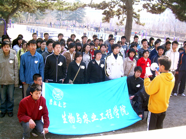 2008年4月4日上午,生物与农业工程学院团委组织了06、07级本科生清明节扫墓活动。约100人在胜利公园进行了缅怀先烈的烈士墓祭扫活动。