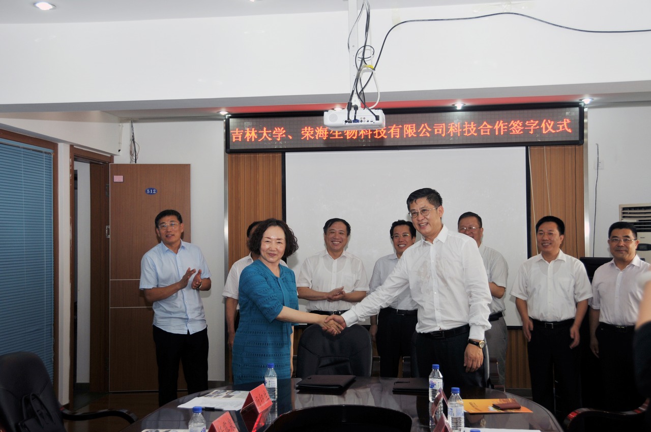 8月12日下午,beat365在线体育官网与荣海生物科技有限公司科技合作协议签字仪式在beat365在线体育官网南岭校区工程仿生教育部重点实验室512会议室举行。吉林省副省长姜有为、省政府副秘书长高志国,中国科学院院士任露泉,beat365在线体育官网党委书记杨振斌、常务副书记蔡莉,荣海生物科技有限公司董事长徐荣、学者刘新旗、总经理助理何如、行政人事部副经理潘柯涛,镇江经济技术开发区招商一局局长郁余佳,学校相关部门负责同志及师生代表等出席签约仪式。仪式由beat365在线体育官网生物与农业工程学院院长杨印生主持。