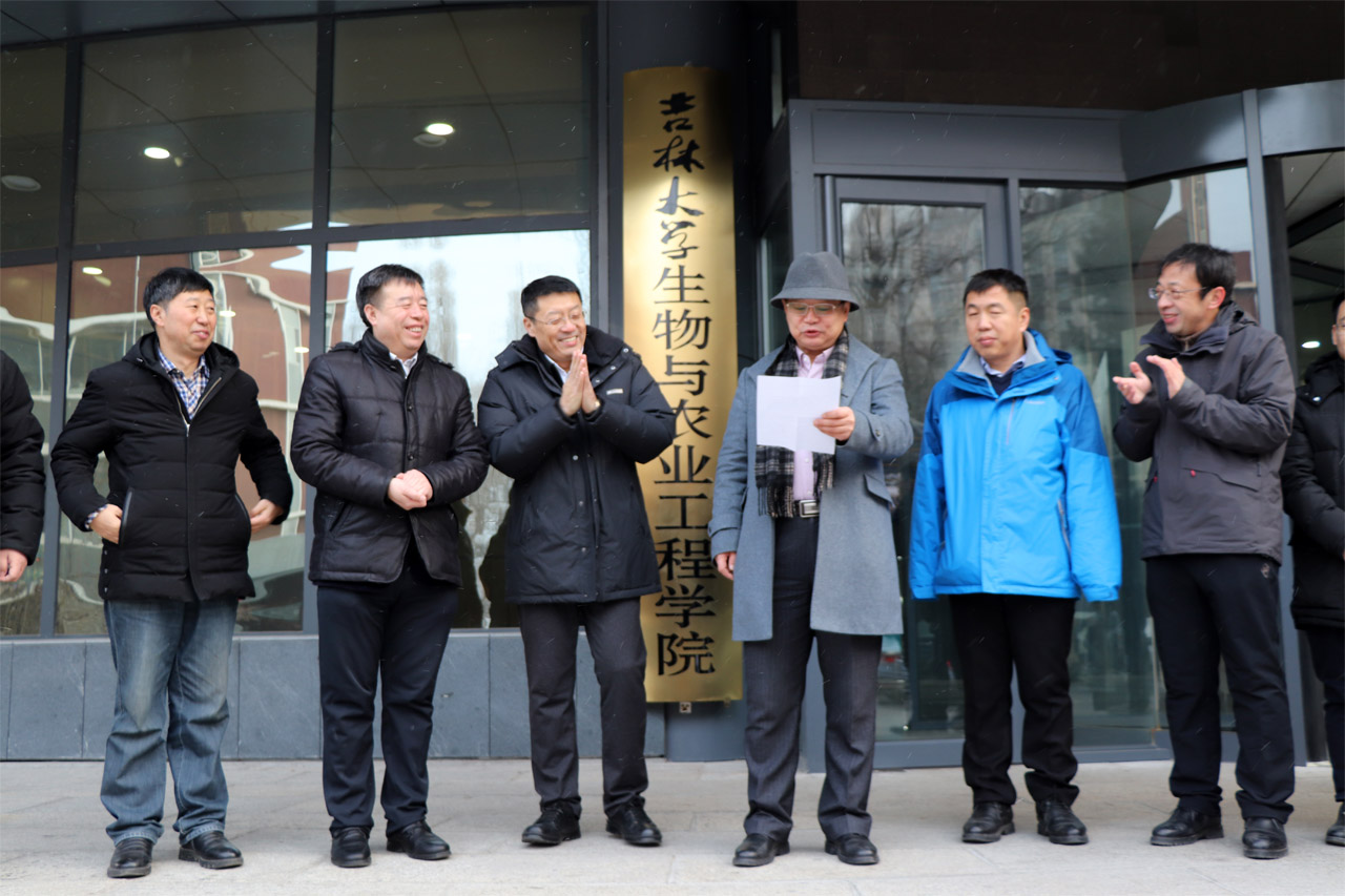 2019年1月14日,腊月初九,生物与农业工程学院在南岭校区农机楼前举行了新院牌揭牌仪式。仪式由院党委书记杨宝泉主持。院长于海业与东区综合办主任曲晓明共同揭下覆盖在承载着60多年历史的“beat365在线体育官网生物与农业工程学院”院牌的红绸。