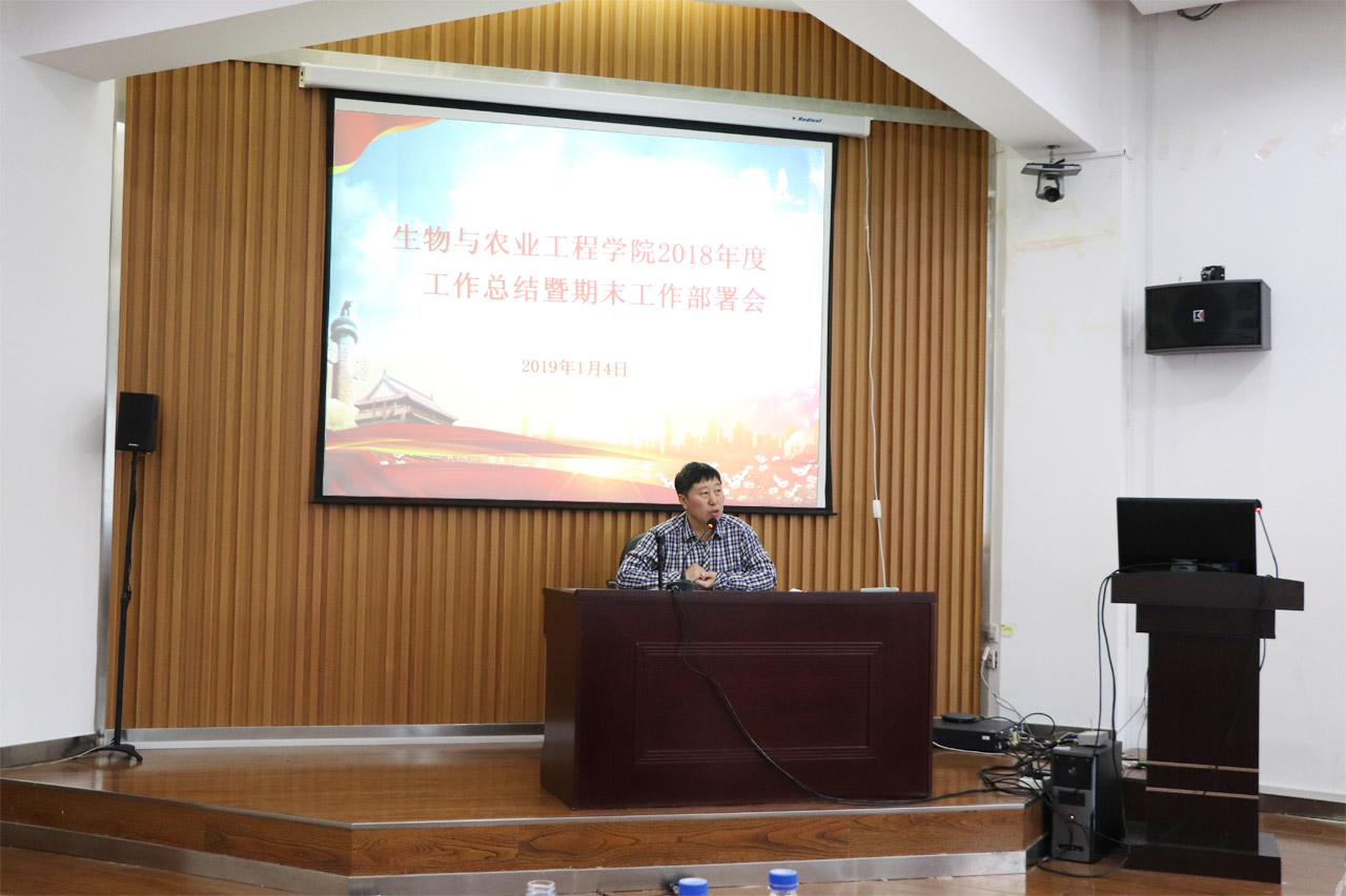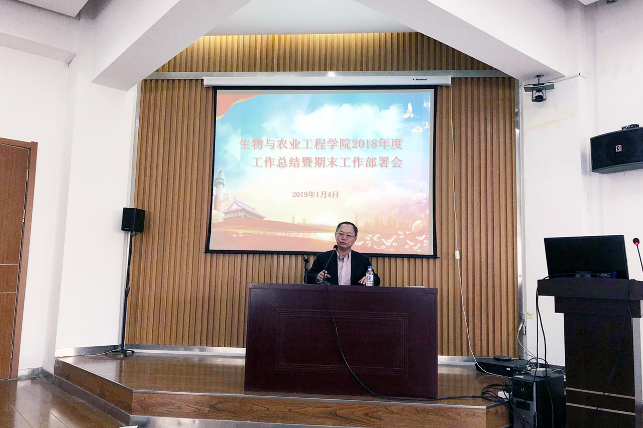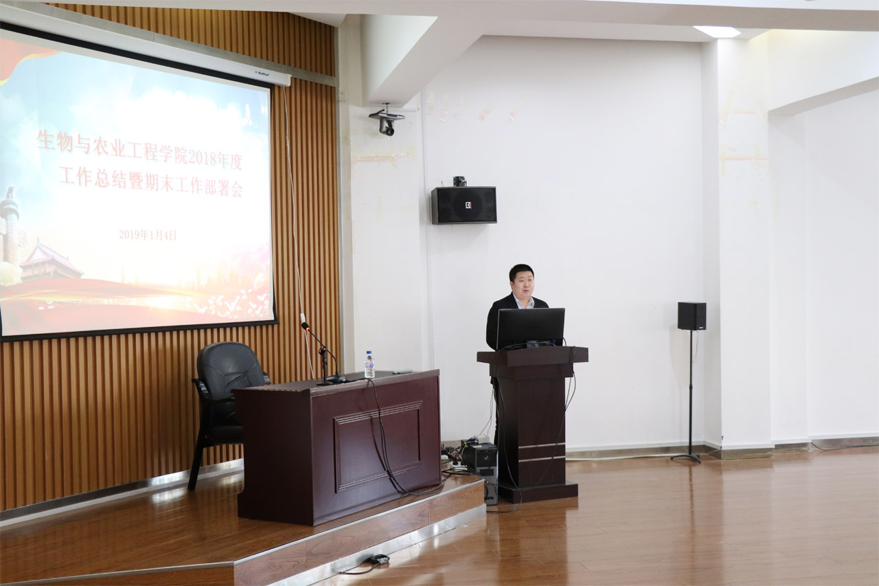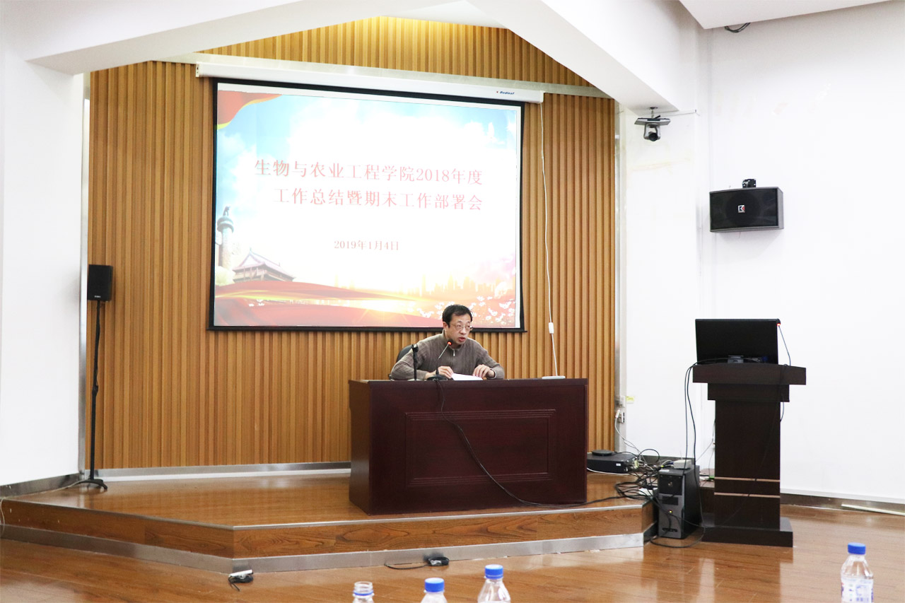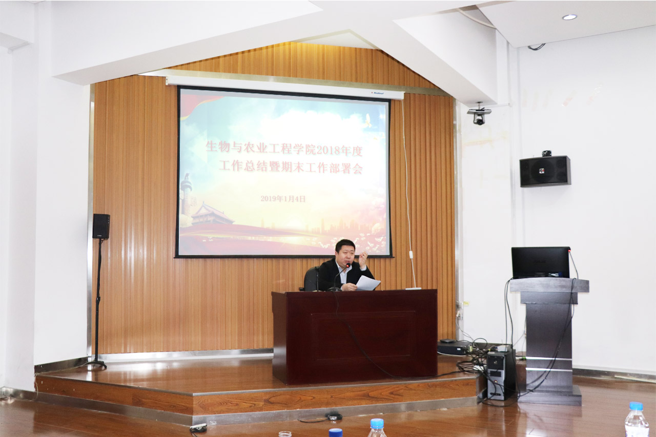 2019年1月4日下午,生物与农业工程学院在工程仿生教育部重点实验室209会议室召开全院大会,对2018年学院工作进行全面总结,并安排了期末相关工作。会议由党委副书记兼副院长吕游主持。