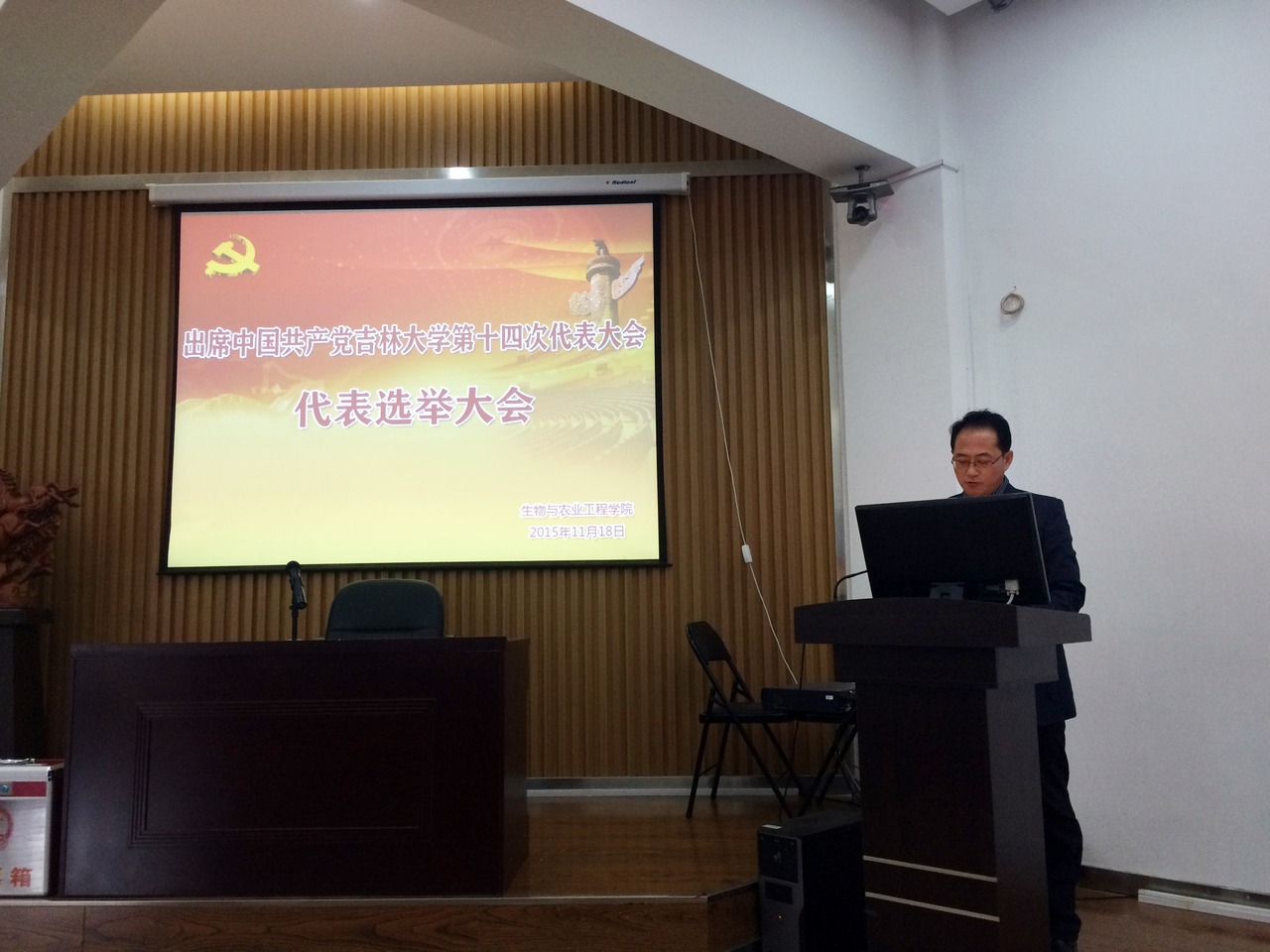 院党委书记吕子珍同志介绍了生物与农业工程学院出席学校第十四次党代会代表推选工作情况,宣读了学校党委《关于同意生物与农业工程学院党委报来的生物与农业工程学学院出席中国共产党beat365在线体育官网第十四次代表大会代表候选人预备人选的批复》同时介绍了代表候选人预备人选情况。经全体与会人员表决,通过了《生物与农业工程学院党委出席中国共产党beat365在线体育官网第十四次代表大会代表选举办法》和监票人、计票人名单。