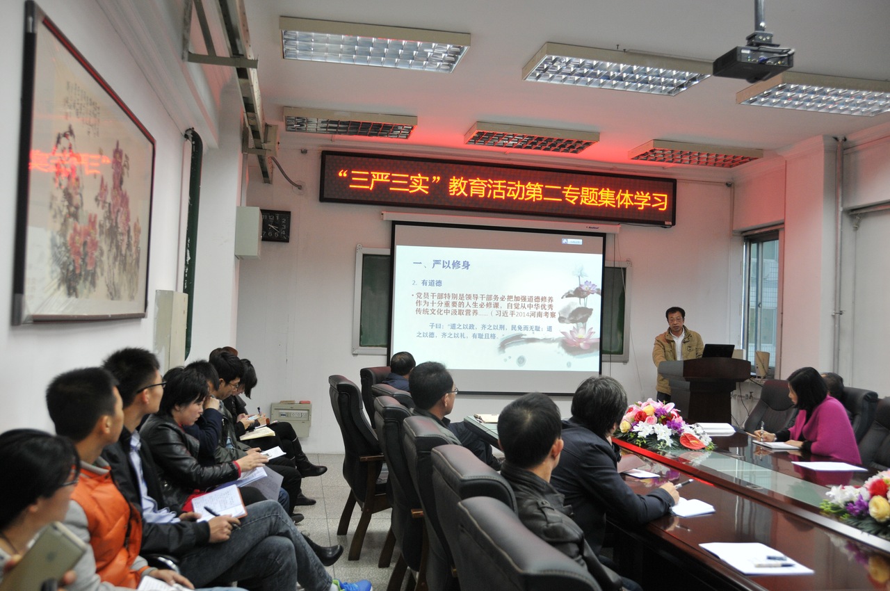 为深入领会“三严三实”专题教育活动内涵,推动党员干部进一步坚定理想信念,不断加强党性修养,增强建设世界一流大学的紧迫感、责任感和使命感,按照学校党委“三严三实”专题教育工作部署,生物与农业工程学院党委于2015年10月21日下午3时,在408会议室召开了“三严三实”教育活动第二专题学习研讨会。副处级以上领导干部,党委委员,各系主任、副主任、实验室主任(党员),各党支部委员,学术委员会、学位评定分委员会、教学委员会、教代会委员(党员),机关党支部全体党员参加了会议。会议由院党委书记吕子珍主持。