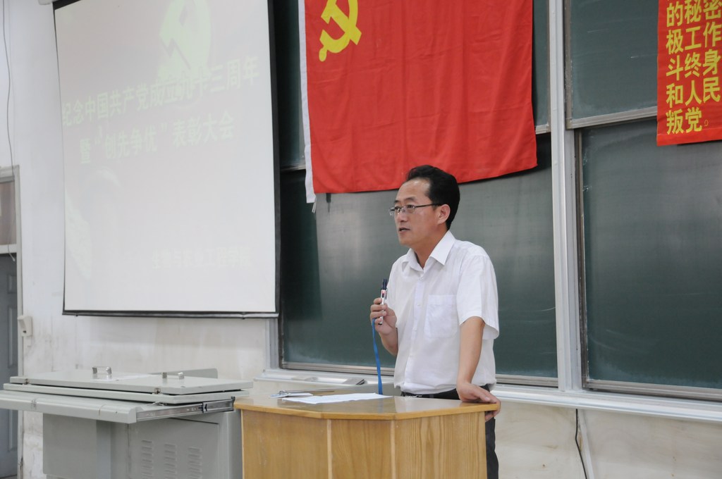 为庆祝中国共产党成立九十三周年,深入开展创先争优活动,使广大党员加强党性修养,增强党员意识,培育和践行社会主义核心价值观,立足岗位,发挥带头作用。2014年6月25日下午3:30分,生物与农业工程学院党委在南岭校区逸夫楼B110室召开了庆祝中国共产党成立九十三周年暨“创先争优”表彰大会。学院225名党员参加了大会,会议由学院党委副书记曲贵文同志主持。