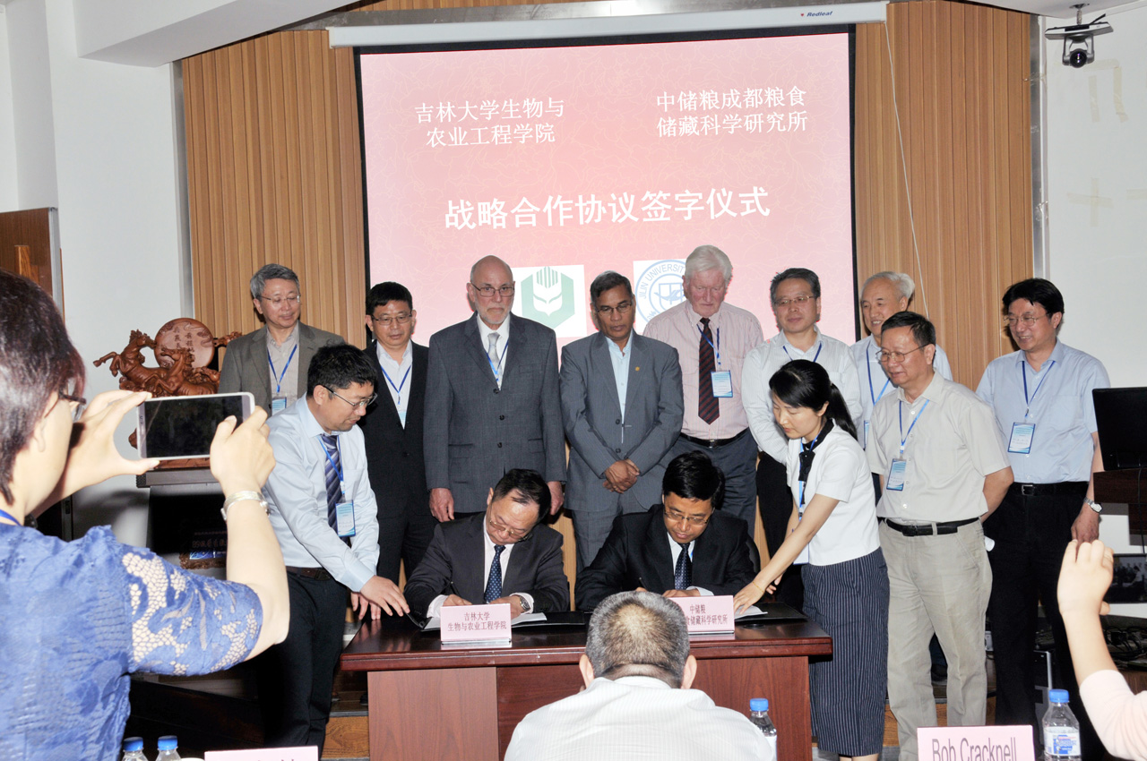 2017年5月20日,在“2017粮食储运技术基础国际学术研讨会(ISTBGST)”召开期间,beat365在线体育官网生物与农业工程学院与中储粮成都粮食储藏科学研究所签署了战略合作协议,协议涉及人才培养、科学研究、平台建设、产品开发、技术推广等内容,旨在推动粮食储藏技术发展。