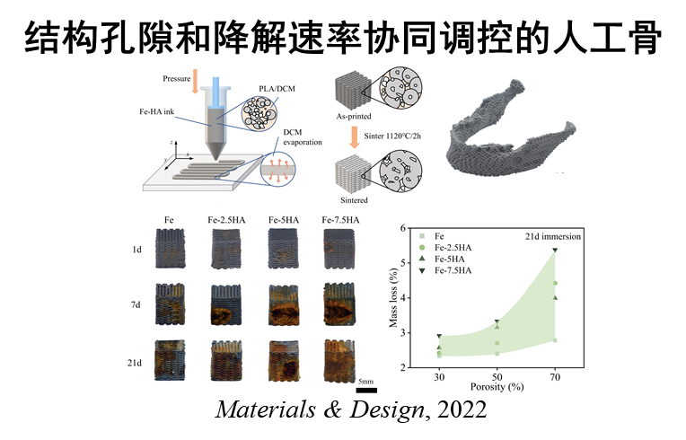 10. C. Xu*, M. Ban, H. Zhang, Q. Liu*, L. Ren. Direct Ink Writing of Porous Fe-HA Metal-Matrix Composites (MMCs) with Independently Adjustable Porosity and Degradation Rate for Bone Implant Applications, Materials & Design, 2022, 224: 111319. (2022年IF=8.4, 中科院1区TOP) https://doi.org/10.1016/j.matdes.2022.111319